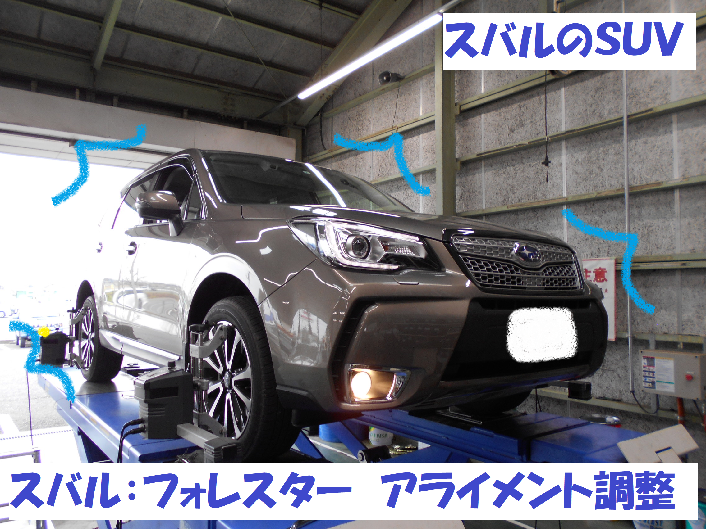 スバル フォレスター アライメント調整作業です スバル フォレスター タイヤ タイヤ ホイール関連 4輪トータルアライメント調整 総和店こだわり作業 タイヤ館 総和 茨城県のタイヤ カー用品ショップ タイヤからはじまる トータルカーメンテナンス